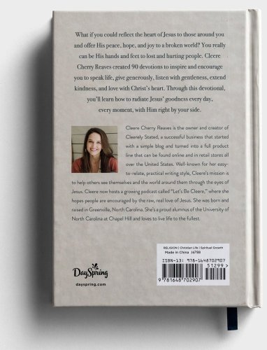 What if you could reflect the heart of Jesus to those around you and offer His peace, hope, and joy to a broken world? You really can be His hands and feet to lost and hurting people. Cleere Cherry Reaves created 90 devotions to inspire and encourage you to speak life, give generously, listen with gentleness, extend kindness, and love with Christ's heart. Through this devotional, you'll learn how to radiate Jesus' goodness every day, every moment, with Him right by your side.