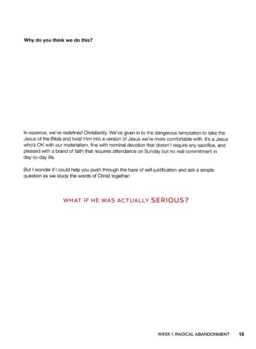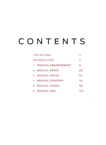 Session 1: Radical AbandonmentSession 2: Radical GraceSession 3: Radical FocusSession 4: Radical StrategySession 5: Radical VisionSession 6: Radical God