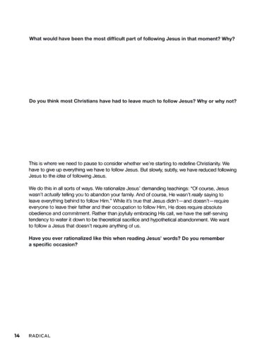 Blends together the gospel implications for the individual from Radical and the corporate implications from Radical TogetherEach session begins on an individual level, then progresses through the week to the corporate level