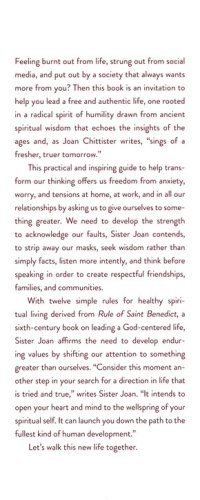 Feeling burnt-out from life, strung-out from social media, and put out by a society that always wants more from you? Beloved nun and social activist Joan Chittister, who appeared on Oprah's Super Soul Sunday, offers a practical, character-building, and inspirational guide to help you take control of your emotional life and redirect your spiritual destiny.
