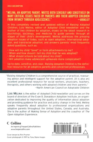 In this completely revised and updated edition of Raising Adopted Children, Lois Melina, editor of Adopted Child newsletter and the mother of two children by adoption, draws on the latest research in psychology, sociology, and medicine to guide parents through all stages of their child's development. Melina addresses the pressing adoption issues of today, such as open adoption, international adoption, and transracial adoption, and answers parents' most frequently asked questions, such as: