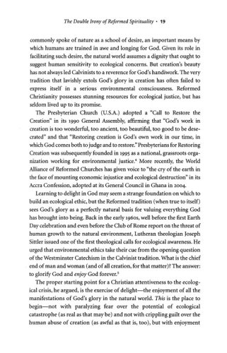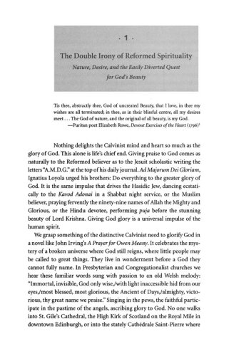 Lane argues for the ''double irony'' of Reformed spirituality, showing that Calvinists who often seem prudish and proper are in fact a people of passionate desire. Similarly, Reformed Christians who appear totally focused on divine transcendence turn out at times to be closet nature mystics,