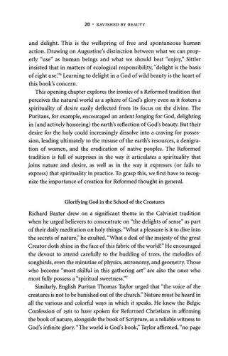exulting in God's glory everywhere. Lane also demonstrates, however, that a spirituality of desire can be derailed, ending in sexual excess and pantheism. Ecologically, holy longing can be redirected from a contemplation of God's splendor in the earth's beauty to a craving for land itself, resulting