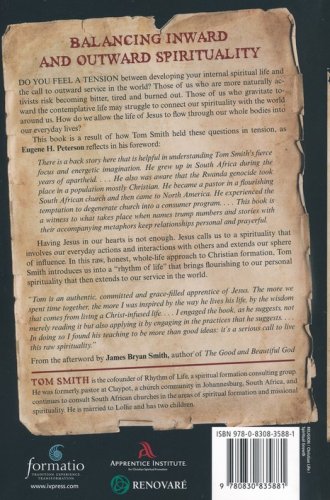 Have you ever felt a tension between developing your internal spiritual life and the call to outward service in the world? Those of us who are more naturally activists risk becoming bitter, tired and burned out. Those of us who gravitate toward the contemplative life may struggle to connect our spirituality with the world around us. How do we allow the life of Jesus to flow through our whole bodies into our everyday lives? This book is a result of how Tom Smith held these questions in tension, as Eugene H. Peterson reflects in his foreword: "There is a back story here that is helpful in understanding Tom Smith's fierce focus and energetic imagination. He grew up in South Africa during the years of apartheid. . . . He also was aware that the Rwanda genocide took place in a population mostly Christian. He became a pastor in a flourishing South African church and then came to North America. He experienced the temptation to degenerate church into a consumer program. . . . This book is a witness to what takes place when names trump numbers and stories with their accompanying metaphors keep relationships personal and prayerful." Having Jesus in our hearts is not enough. Jesus calls us to a spirituality that involves our everyday actions and interactions with others and extends our sphere of influence. In this raw, honest, whole-life approach to Christian formation, Tom Smith introduces us into a "rhythm of life" that that brings flourishing to our personal spirituality that then extends to our service in the world.