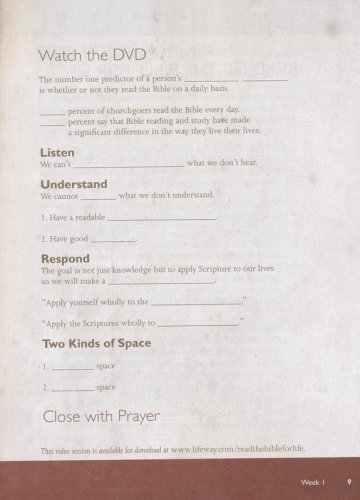 Read the Bible for Life – Workbook by George Guthrie is a participant's guide to a whole-church approach to greater biblical literacy. This study equips individuals and churches to better understand the Bible by introducing readers to its history, genres, interpretation, and proper application to transform lives through reading and studying God's Word. God inspired the biblical writers to use a variety of literary types, including stories, poetry, proverbs, parables, and others.