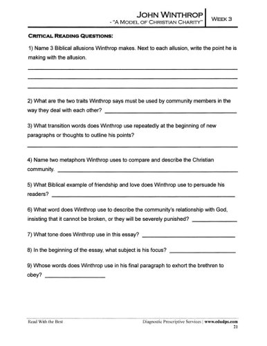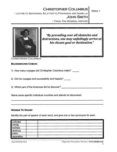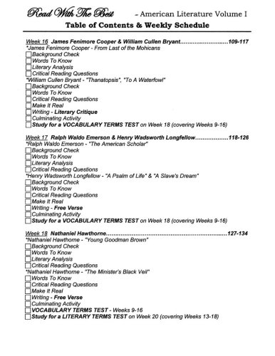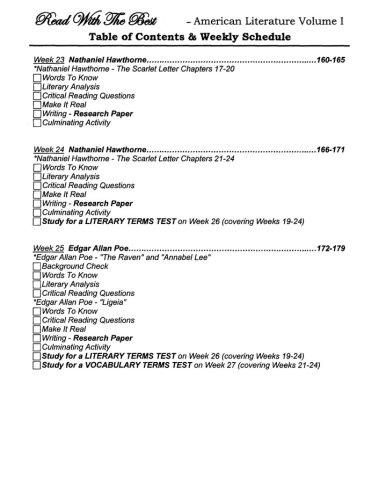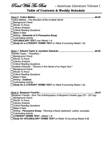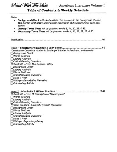 Review Read with the Best: American Literature Volume 1 1500- 1860 Student Workbook.