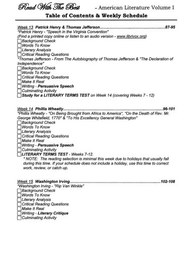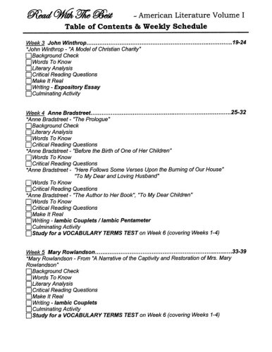 Read with the Best: American Literature Volume 1 1500- 1860 Student Workbook