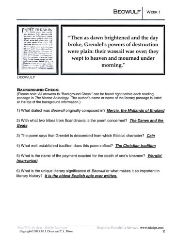 Review Read With the Best: British Literature Teacher's Edition.