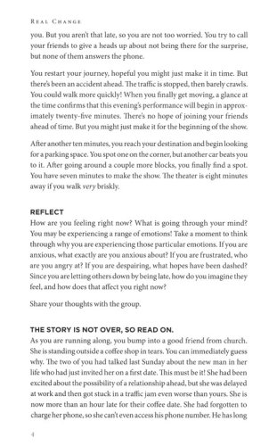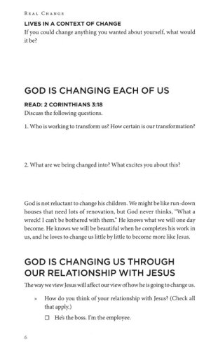 Real Change: Becoming More Like Jesus in Everyday Life is based on the CCEF model of change from David Powlison's course, Dynamics of Biblical Change. The easy-to-use six lesson format and included leader's guide encourages participants toward an honest discussion of their own struggles while providing an understanding of how a relationship with Christ brings change.