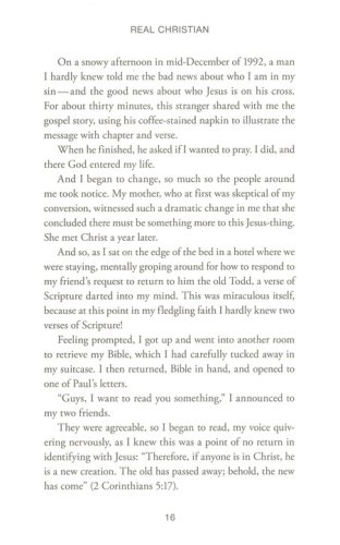 The evangelical church is home to many who claim to follow Christ but who show little evidence of a truly transformed life.   Todd Wilson's Real Christian: Bearing the Marks of Authentic Faith biblically defines what it means to be a true Christian, calling readers to look at their own lives and diagnose where they aren’t living authentically for God. With a prophetic voice, Wilson looks at how we deceive ourselves into thinking we are really living for God through believing the right things or doing lots of spiritual activities.  In contrast, real Christians are marked by five key qualities: broken-hearted joy, a humble disposition, a readiness to acknowledge sin, an ability to live balanced and avoid legalism, and a deep spiritual hunger that drives growth.  All of these qualities culminate in the single defining mark of a real Christian—love.