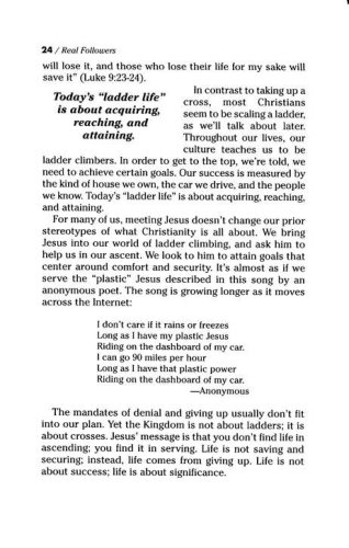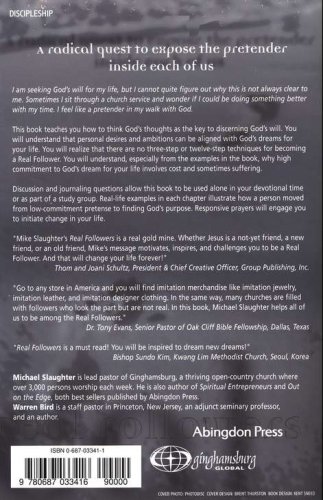 Many Christians, disillusioned with lives of spiritual mediocrity that have been dampened by today’s rampant materialism and cafeteria spirituality, are asking the same question: “Where is the substance that can move our church beyond ho-hum Christianity?” Today’s public fascination with angels, New Age spirituality, and the paranormal is likewise spurring Christ’s followers to look for greater and deeper life transformation through their faith. Real Followers: Beyond Virtual Christianity shows how an ordinary church can be transformed into a radical community—a fellowship of everyday people who began looking for meaning and searching for authenticity. Michael Slaughter describes a movement that is hooked in various generations, from buster to boomer to builder. This resource also includes discussion questions. Key Features: • Readers examine culturally relevant concepts to ask the age-old question:“Will you give up your right to yourself, take up the cross, and radically follows Jesus?” • Readers are presented with a workable example of how to grow their church, with examples from Ginghamsburg Church • Contains case studies of real people who have begun a “migration in the wrong direction” • Includes discussion questions Small groups will •learn what it really means to find their destiny as Christ’s followers • be inspired to take doable steps toward becoming authentic Christ followers
