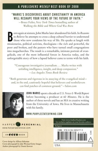 Born again at sixteen, John Marks later abandoned his faith. In Reasons to Believe he attempts to cross a deep cultural barrier to understand those who now condemn his way of life. He speaks at length with missionaries, political activists, theologians—the rich and powerful, the poor and broken, and the pastors who have turned small congregations into megachurches. The result is a remarkable, intimate portrait of evan-gelicals, one of the most influential forces in America today, and the unforgettable story of how a lapsed believer came to terms with his faith.