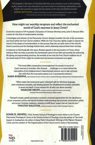 In this first volume in IVP Academic's Dynamics of Christian Worship series, John D. Rempel offers a vision for this kind of transformative worship. A theologian and minister in the Mennonite Church, Rempel considers the role of the sacraments and ritual within the Free Church tradition. While the Free Churches rightly sought to cleanse the church of the abuses of sacramentalism, in that process they also set aside some of the church's historic practices and the theology behind them, which ultimately impoverished their worship.