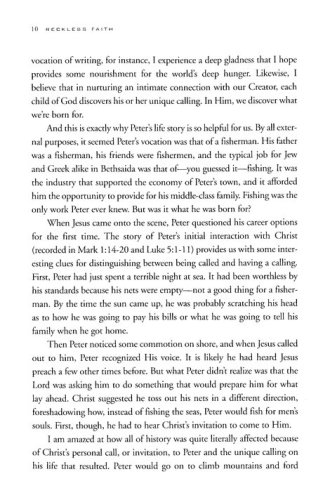 Reckless Faith looks at this caustic, cocky, cowardly, chosen man and what his life has to say to Christians today. Through a study of his letters, the book of Acts, and the Gospels, Peter springs off the page as one who held nothing back, lived large, and was used by God despite his most sinful nature.