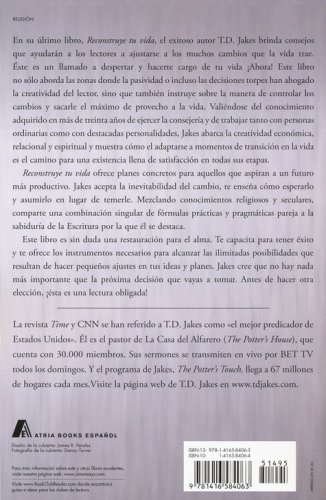 En su œltimo libro, Reconstruye tu vida, el exitoso autor T.D. Jakes brinda consejos que ayudar‡n a los lectores a ajustarse a los muchos cambios que la vida trae. ƒste es un llamado a despertar y hacerte cargo de tu vida ÁAhora! Este libro no s—lo aborda las zonas donde la pasividad o incluso las decisiones torpes han ahogado la creatividad del lector, sino que tambiŽn instruye sobre la manera de controlar los cambios y sacarle el m‡ximo de provecho a la vida. ValiŽndose del conocimiento adquirido en m‡s de treinta a–os de ejercer la consejer’a y de trabajar tanto con personas ordinarias como con destacadas personalidades, Jakes abarca la creatividad econ—mica, relacional y espiritual y muestra c—mo el adaptarse a momentos de transici—n en la vida es el camino para una existencia llena de satisfacci—n en todas sus etapas.