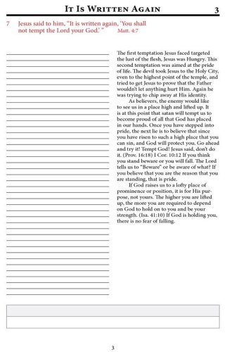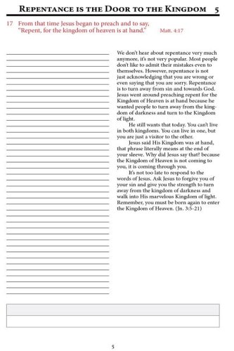 This devotional has been designed as a prayer journal so you can write down what the Lord is speaking to you each day. You may even want to go through these passages yearly and write down your thoughts each time. This could be the added blessing of seeing your spiritual journey over a period of time.