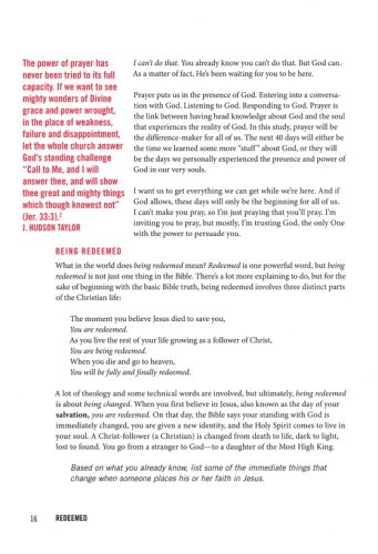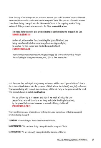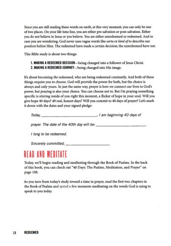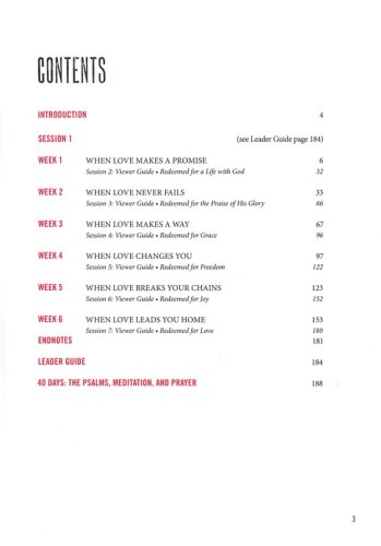 Leader helps to guide questions and discussions within small groups6 personal study segments with homework to complete between 7 weeks of group sessions"40 Days of Prayer" section to help women practically apply the concept of ongoing redemption to their lives