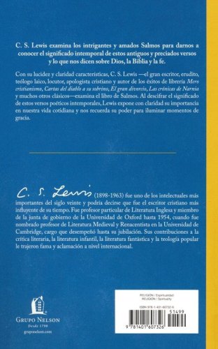 En este acertado y esclarecedor libro, C. S. Lewis, el gran escritor británico, erudito, teólogo laico, locutor, apologista cristiano y autor bestseller de Mero cristianismo, Las cartas del diablo a su sobrino, El gran divorcio, Las crónicas de Narnia y muchos otros amados clásicos, examina los Salmos. A medida que Lewis revela el significado de estos versos poéticos intemporales, aclara su importancia en nuestra vida cotidiana y nos recuerda su poder para iluminar momentos de gracia.