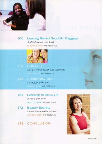 Refresh blends the beauty of a women?'s magazine with the depth of individual and group Bible study. Women of all walks of life will enjoy how God?'s Word is applied in new ways to daily challenges, struggles, and questions many women have. Readers will be inspired and grow in their understanding of God. With an encouraging, warm, and conversational tone, this bookzine gives readers ten Refreshments a revealing mix of women?'s stories that range from moving to humorous.