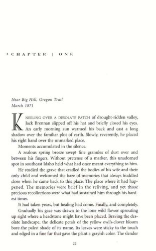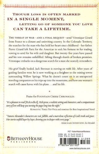 The threat of war–and a final request–send Véronique Girard from France to a distant and uninviting country. In the Colorado Territory, she searches for the man who has held her heart since childhood–her father. Pierre Girard left Paris for the Americas to seek his fortune in fur trading, vowing to send for his wife and daughter. But twenty-five years have passed and his vow remains unfulfilled. Sifting through shards of broken promises, Véronique embarks on a dangerous search for a man she scarcely remembers. His grief finally healed, Jack Brennan is moving on with life. After years of guiding families west, he is now working as a freighter to the mining towns surrounding Willow Springs. What he doesn't count on is an unexpected traveling companion on his trips up into the mountains, and how one woman's search will cause havoc with his plans . . . and his life.