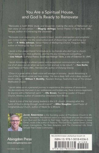 In Renovate, author and pastor Jacob Armstrong uses the Book of Nehemiah to explore the physical and spiritual renovation experienced by the nation of Judah. Nehemiah knew that his plan for renovating the wall and gates of Jerusalem would be hard work. But equally hard would be the spiritual renovation of the Jewish people as they returned to their homeland. Thankfully, spiritual renovation is not a do-it-yourself project. We need God's great power working through us to renovate our lives by the power of the Holy Spirit.