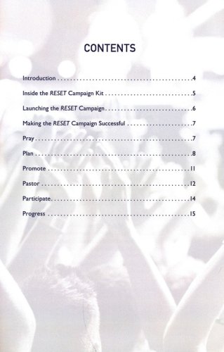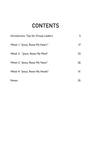 Week 1: Reset My Heart – It All Starts HereWeek 2: Reset My Mind – I Am What I Think AboutWeek 3: Reset My Voice – Good News for Bad TimesWeek 4: Reset My Hands – Soul at Peace, Hands at Work