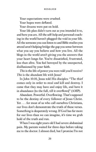 Both challenging and encouraging, Resolved unpacks ten life-impacting resolutions that every follower of Jesus Christ must make in order to stand strong in the shifting sands of our culture. It helps readers who long to exhibit authentic lives understand and eliminate the disconnect between what we say we believe and how we live. And it offers biblical strategies for change that will allow us to stand strong–no matter what.