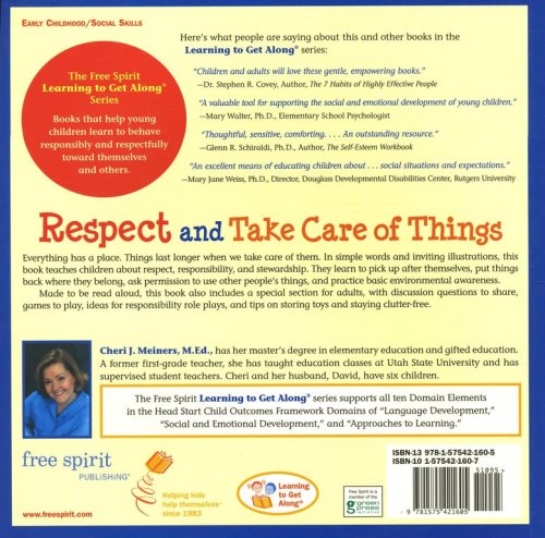 Everything has a place. Things last longer when we take care of them. Respect, responsibility, and stewardship are concepts that even young children can relate to—because they have things they value. This book encourages children to pick up after themselves, put things back where they belong, and ask permission to use things that don’t belong to them. It also teaches simple environmental awareness: respecting and taking care of the earth. Includes ideas for adult-led activities and discussions.