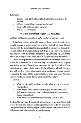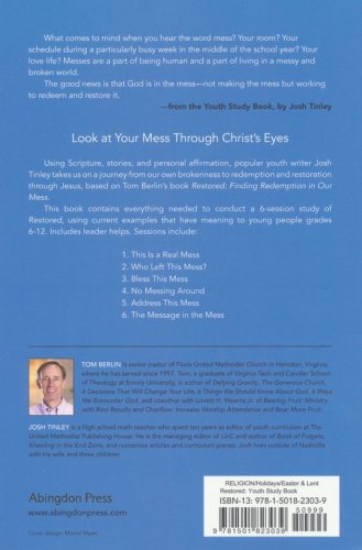 Often we make a mess of our lives and wonder if there is any redemption. In this six-week study, pastor and author Tom Berlin helps us see our mess through the eyes of Christ to find redemption and restoration. Using Scripture, devotional tools, and the writings of Ignatius of Loyola, John of the Cross, St. Augustine, John Wesley, Evelyn Underhill, and others, Berlin encourages reflection and meditation through our own brokenness. Only then can we focus on the cross as the place where we truly surrender control, leave our mess, and find redemption. Everything needed to conduct a six-session study of Restored, using current examples that have meaning to young people grades 6-12. Includes leader helps. Includes leader helps and discussion questions that can be used with the adult-level DVD.
