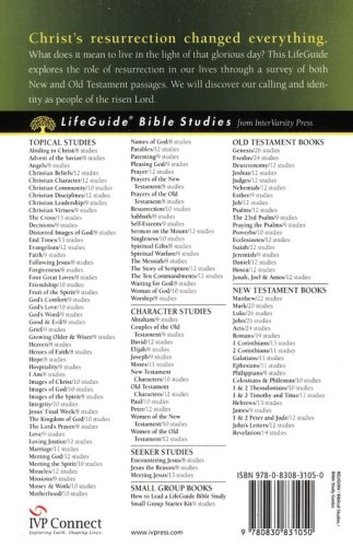 Christ's resurrection changed everything. What does it mean to live in the light of that glorious day? This ten-session LifeGuide ® Bible Study explores the role of resurrection in our lives through a survey of both New and Old Testament passages. Discover your calling and identity as a child of the risen Lord. For over three decades LifeGuide Bible Studies have provided solid biblical content and raised thought-provoking questions—making for a one-of-a-kind Bible study experience for individuals and groups. This series has more than 130 titles on Old and New Testament books, character studies, and topical studies.