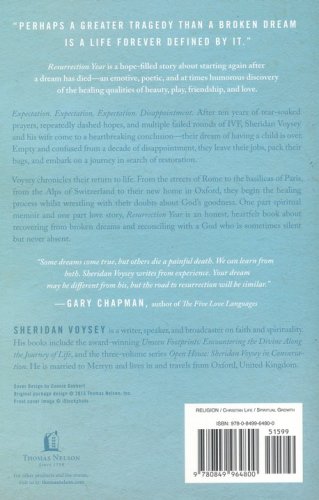 Voysey chronicles their return to life. From the streets of Rome to the Basilicas of Paris, from the Alps of Switzerland to their new home in Oxford, they begin the healing process while wrestling with their doubts about God’s goodness. One part spiritual memoir and one part love story, Resurrection Year is an honest, heart-felt book about recovering from broken dreams and reconciling with a God who is sometimes silent but never absent.
