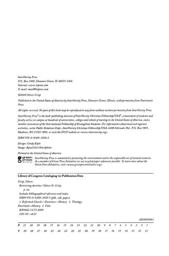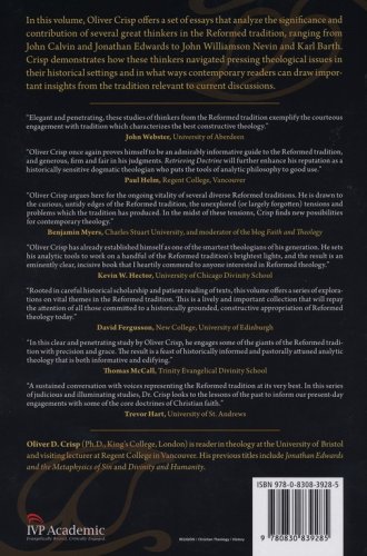 In this volume Oliver Crisp offers a set of essays that analyze the significance and contribution of several great thinkers in the Reformed tradition, ranging from John Calvin and Jonathan Edwards to Karl Barth. Crisp demonstrates how these thinkers navigated pressing theological issues in their historical settings and in what ways contemporary readers can draw important insights from the tradition relevant to current discussions.