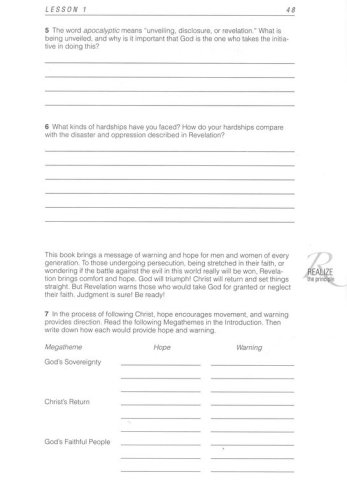 Revelation—13 lessons that give us hope as we face an uncertain future. Whether you are teaching a class, leading a small group, or just looking for a challenging personal study, Life Application Bible Studies are for you. With thought-provoking questions, complete lesson format, the full text from the Bible, and the most extensive commentary available in a Bible-study booklet, these study guides gives you everything you need to understand God’s Word and apply it to your life. Ideal for those looking for an application oriented approach to Bible study. Each title contains the following: