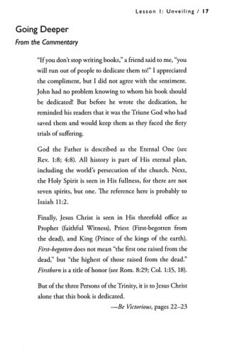 The book of Revelation is one of the most intriguing books of the Bible. It’s also one of the most mysterious. Filled with vivid imagery, rich themes, and deep spiritual insights, it can be challenging to read and understand. Yet woven throughout Revelation’s sweeping tapestry is a unifying message: The victory found in Jesus Christ. This Bible study takes an in-depth, yet practical, look at the book of Revelation, and shares how we can experience a victorious life. The Wiersbe Bible Studies Series explores timeless wisdom found in God’s word. Based on Dr. Warren W. Wiersbe’s popular "BE" series, each study provides topical, relevant insights from selected books of the Bible. Designed for small groups, this eight-week study features selected commentaries from Be Victorious, engaging questions, and practical applications, all designed to help you connect God’s word with your life.