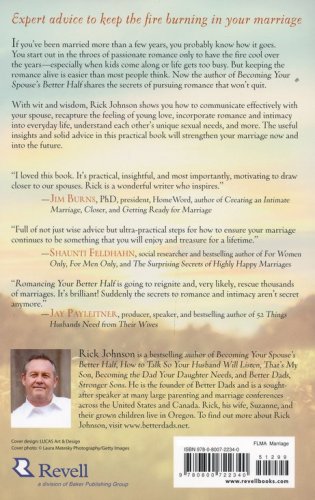 With wit and wisdom, Rick Johnson shows men and women how to communicate effectively with their spouses, recapture the feeling of young love, incorporate romance and intimacy into everyday life, understand each other's unique sexual needs, and more. Anyone who has been married more than a couple of years will find useful insights and solid advice that will strengthen their marriage now and into the future.