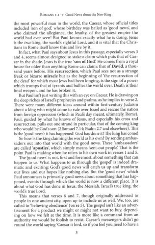 Paul’s letter to the Romans comes alive in N. T. Wright’s updated, reader-friendly translation and insightful commentary. He guides the reader through the world of the New Testament, explaining the ideas and events that shaped Paul’s powerful witness to the gospel. Breaking down Romans into brief, easy-to-study segments, Wright shows how Paul’s account of God’s gracious gift in Christ speaks powerfully to the spiritual longings of contemporary readers. New Christians and longtime followers of Jesus alike will find inspiration and practical wisdom for their journey within these pages.