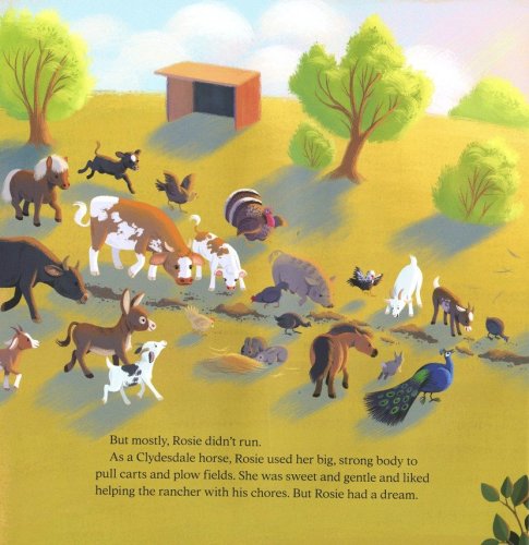 Rosie the Clydesdale is a BIG horse. She likes her life on the ranch and helping the farmer with his chores, but she also has a secret dream: she wants to be a rodeo star. She finally gets her chance when she teams up with a plucky cowgirl named Oakley, but the rodeo events aren’t designed for a big horse like Rosie. When a rogue bull disrupts the competition, though, Rosie and Oakley might be the only ones big and brave enough to stop him.