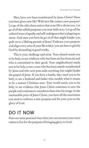 As a Christian man, you are already running the race of life. You are not competing against other people, but against the deadly enemies of the world, the flesh, and the devil. How do you plan to maintain your pace throughout this race? To obtaint the prize, you will need to run to the very end. You will need to cross that finish line. And to do that you will need to plan your race. You will need to plan the ways you will run today so you can continue to run in the difficult days ahead. That is what this book is all about.