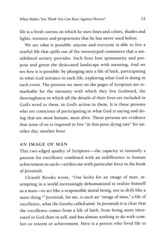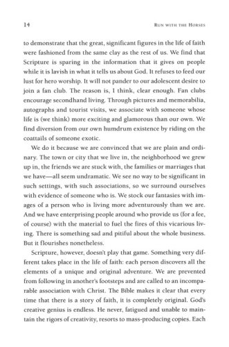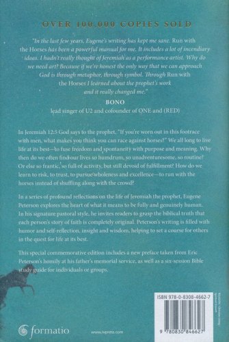 In Jeremiah 12:5 God says to the prophet, "If you're worn out in this footrace with men, what makes you think you can race against horses?" We all long to live life at its best—to fuse freedom and spontaneity with purpose and meaning. Why then do we often find our lives so humdrum, so unadventuresome, so routine? Or else so frantic, so full of activity, but still devoid of fulfillment? How do we learn to risk, to trust, to pursue wholeness and excellence—to run with the horses instead of shuffling along with the crowd? In a series of profound reflections on the life of Jeremiah the prophet, Eugene Peterson explores the heart of what it means to be fully and genuinely human. In his signature pastoral style, he invites readers to grasp the biblical truth that each person's story of faith is completely original. Peterson's writing is filled with humor and self-reflection, insight and wisdom, helping to set a course for others in the quest for life at its best. This special commemorative edition includes a new preface taken from Eric Peterson's homily at his father's memorial service, as well as a six-session Bible study guide for individuals or groups.