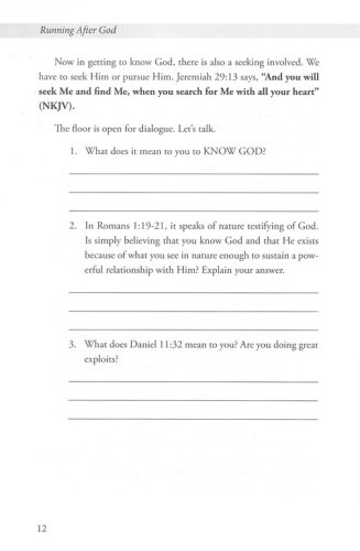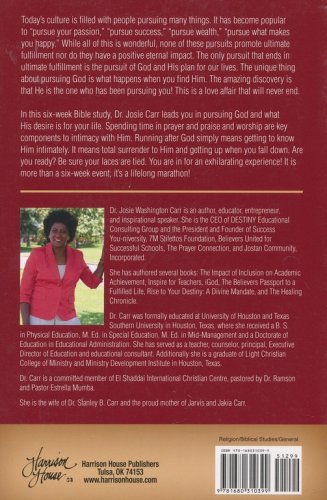 In this six week Bible study, Dr. Josie Carr leads you into pursuing God and what His desire is in your life. Spending time in prayer and praise and worship are key components to intimacy with Him. Running after God simply means getting to know Him in an intimate way. It means total surrender to Him and getting up when you fall down. Are you ready? Be sure your shoe laces are tied because you are in for an exhilarating experience! It is more than a six week event, it is a lifelong marathon!