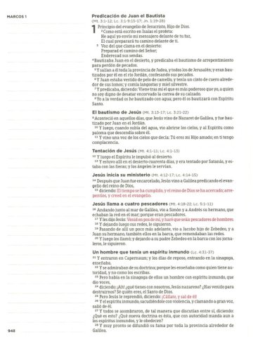 Palabra de Cristo en rojoTexto en una sola columnaEspacio para notas de 4.75 – 5 cmsPágina de presentaciónPlan de lectura bíblica de un añoResumen de introducción para cada libro de la BibliaMapas a todo colorCinta marcadoraCaja de regalo