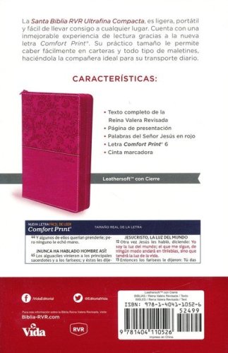 La Santa Biblia RVR Ultrafina Compacta, es ligera y portátil, fácil de llevar consigo a cualquier lugar, y cuenta con una inmejorable experiencia de lectura gracias a la nueva letra Comfort Print. Con una variedad de hermosos diseños, esta Biblia es bella por dentro y por fuera. Su práctico tamaño le permite caber fácilmente en carteras y todo tipo de maletines, haciéndola la compañera ideal para su transporte diario. Incluye un fino nuevo diseño tipográfico, palabras del Señor Jesús en rojo, plan de lectura y Plan de Salvación.