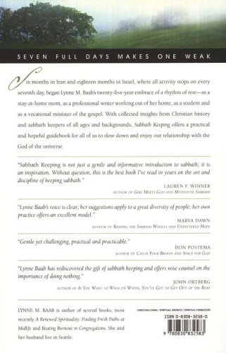 When we fail to rest we do more than burn ourselves out. We misunderstand the God who calls us to rest–who created us to be people of rest. Let's face it: our rest needs work. Sabbath recalls our creation, and with it God's satisfaction with us as he made us, without our hurried wrangling and harried worrying. It also recalls God's deliverance of the Israelites from Egypt, and with it God's ability to do completely what we cannot complete in ourselves. Sabbath keeping reminds us that we are free to rest each week. Eighteen months in Tel Aviv, Israel, where a weekly sabbath is built into the culture, began Lynne M. Baab's twenty-five-year embrace of a rhythm of rest—as a stay-at-home mom, as a professional writer working out of her home and as a minister of the gospel. With collected insights from sabbath keepers of all ages and backgrounds, Sabbath Keeping offers a practical and hopeful guidebook that encourages all of us to slow down and enjoy our relationship with the God of the universe.