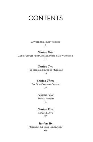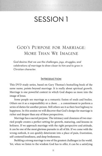 In this six-session small group Bible study (DVD/digital video sold separately), Sacred Marriage, writer and speaker Gary Thomas invites you to see how God can use marriage as a discipline and a motivation to reflect more of the character of Jesus.