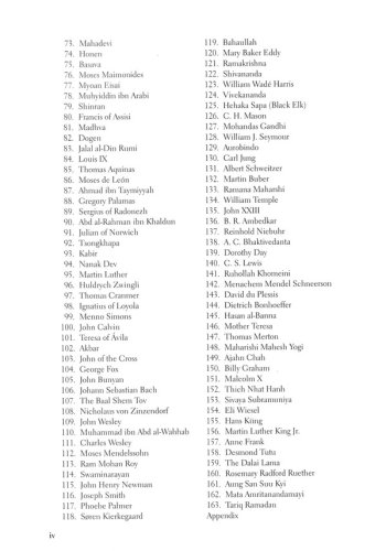 Explore the variety of ways humans experience the holy through 150+ one-page biographies of notable masters from the world’s great spiritual traditions.