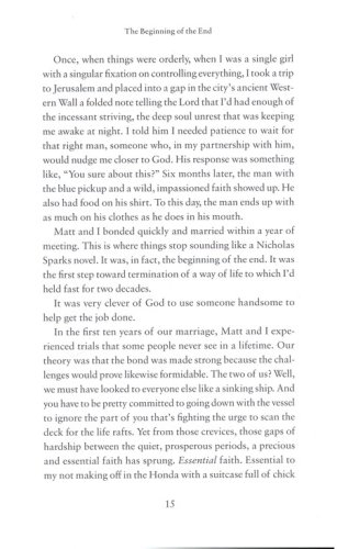 According to Perry, "The hardest stuff is the quickest way to God," and readers get to watch the systematic destruction of her carefully planned life, laughing at her missteps, aching at her tragedies, and recognizing themselves along the way. A mother of three children, two of whom are on the autism spectrum, she has experienced plenty of ups and downs, but from the chaos of her "ordinary" life she pulls the universal truths of motherhood, addressing them with humor, poignancy, and a naked honesty that will make the reader think, That sounds a lot like my crazy life. Perry helps mothers realize they aren't alone, even if they've fallen off the straight and narrow of their intended path and are instead lying in the ditch next to it. Life's a mess. But as Perry reminds us, it's all for a purpose.