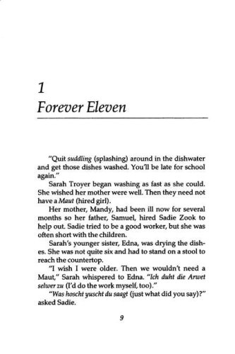 Sarah Troyer faces changes in her Amish family caused by her mother's illness and death. She is sure that Sadie Zook, the hired girl, mistreats her and scolds her unfairly. At school, Sarah finds Regina Byler to be an understanding friend. A near-tragic house fire helps bring healing to Sarah. Former hurts are forgotten, and Sarah learns to accept a new mother and to work as a hired girl herself.