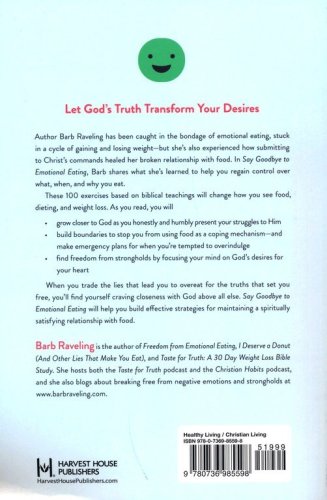 In Say Goodbye to Emotional Eating author Barb Raveling will help you build effective strategies for maintaining a spiritually satisfying relationship with food. Using 100 biblical based teachings she shows you how to break free from the bondage of emotional eating and regain control over what, when, and why you eat.