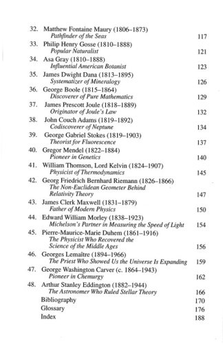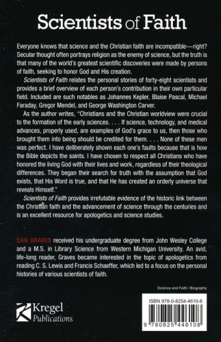 Dan Graves relates the personal stories of forty-eight faithful men, providing a brief overview of each person's contribution in their field. Included are such notables as Johannes Kepler, Blaise Pascal, Michael Faraday, Gregor Mendel, and George Washington Carver.