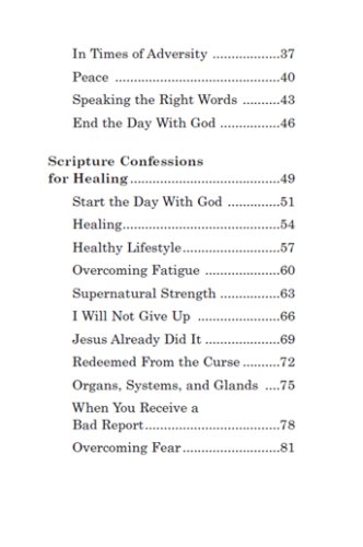 This unique collection of Confessions is a must have for readers on the go. Whether at work or home, readers can access Scripture Confessions and remind themselves of God's faithful promises in all areas including healing, finances, protection, wisdom, parenting, and more! Readers will find powerful, personalized declarations of faith that will strengthen them with God's Word to overcome every adversity.